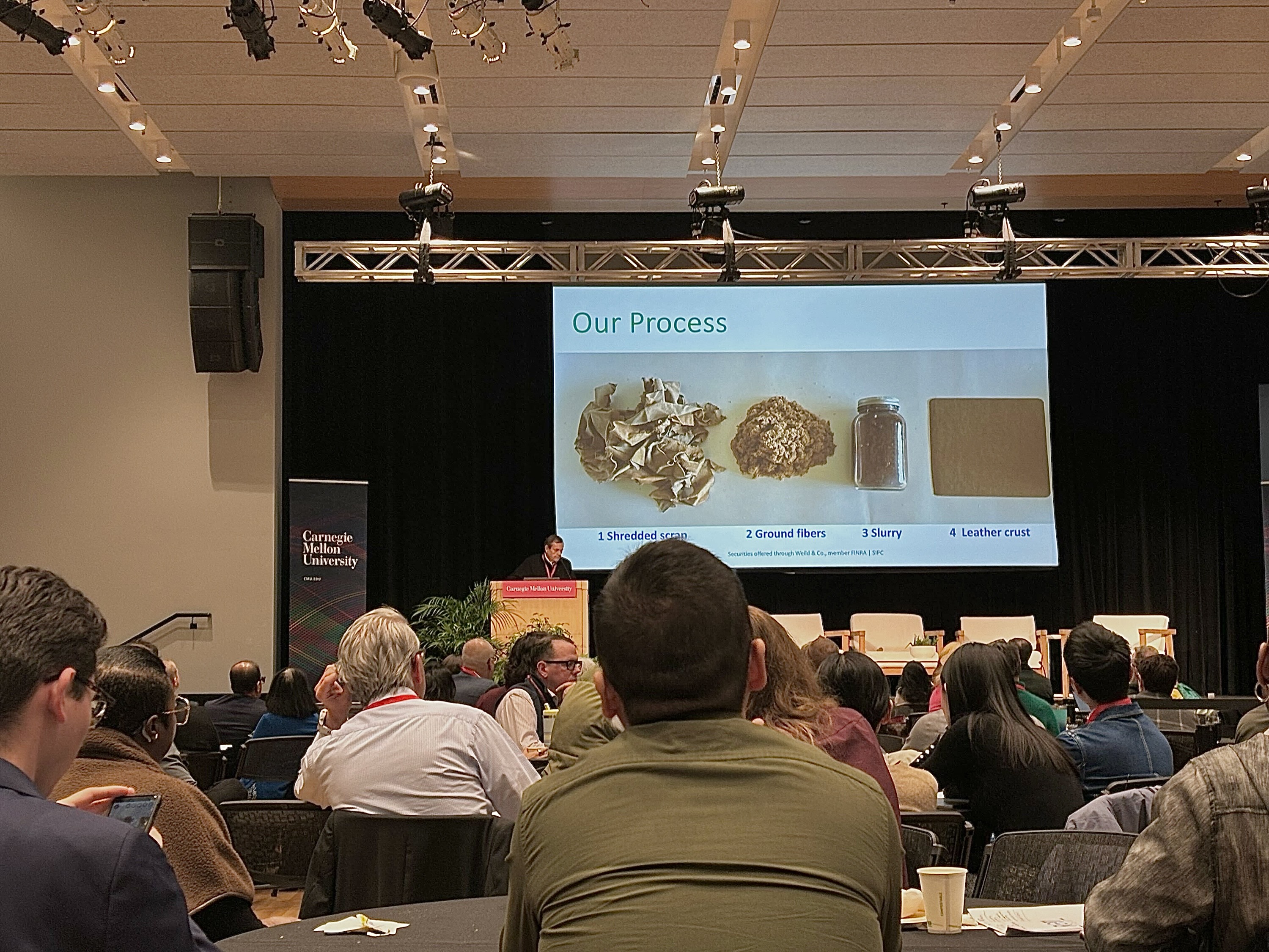 One startup that drew substantial attention was Sustainable Composites, LLC. Citing that “50 percent of all leather produced is discarded” — because cows are not shaped the way leather products are — the method Sustainable Composites uses for repurposing scrap leather into new leather is in demand by “60 companies,” including Nike, the largest leather consumer in the world.
